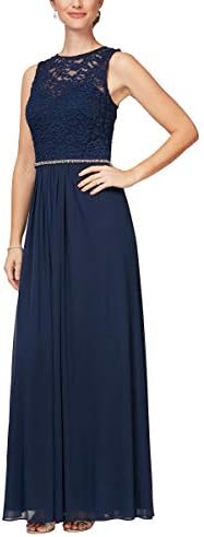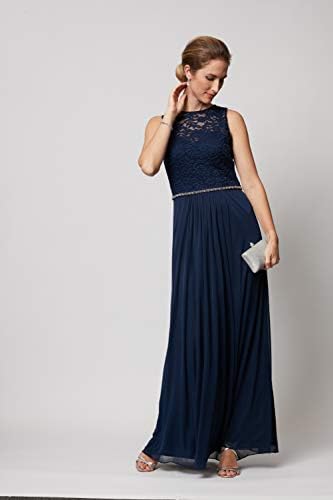 Long Sleeveless A-Line Dress with Embellished Waist Detail