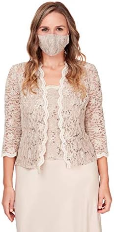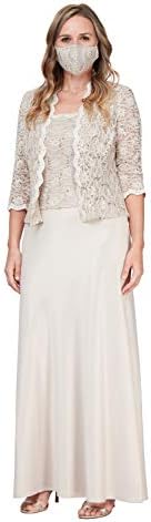 Our long A-line mock jacket dress with scallop and sequin detail is great for a formal wedding. Perfect for a mother of the bride,
