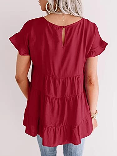 Features: Boat Neck, Short Ruffle Sleeve, Solid Color, Ruffles Hem, Back Keyhole, Casual loose babydoll shirts for women.Also it’s a good Maternity Shirt for summer.