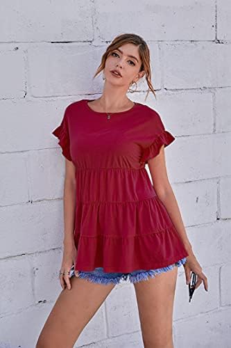 Women Summer Short Sleeve T Shirt Casual Loose Swing Ruffles Hem Peplum Babydoll Tops