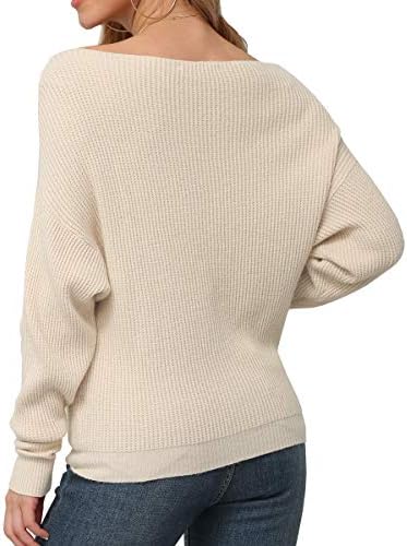 Women’s Waffle Knit Boat Neck Sweater Batwing Long Sleeve Shirts Loose Knit Pullover