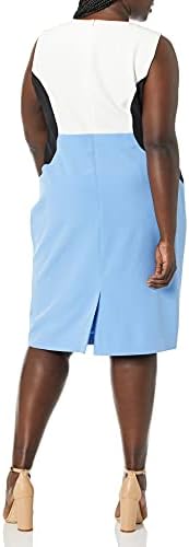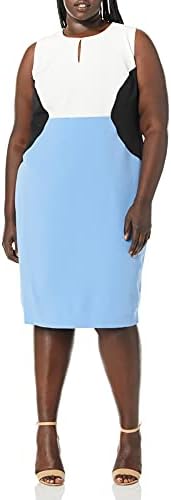 Sleeveless jewel neck color block dress in stretch crepe fabrication