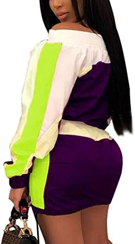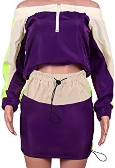 Pop elements: Colorful Stitching stripes;2 pieces outfit tracksuit set: long sleeve top + bodycon skirt Lightweight material, soft and comfy