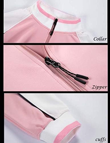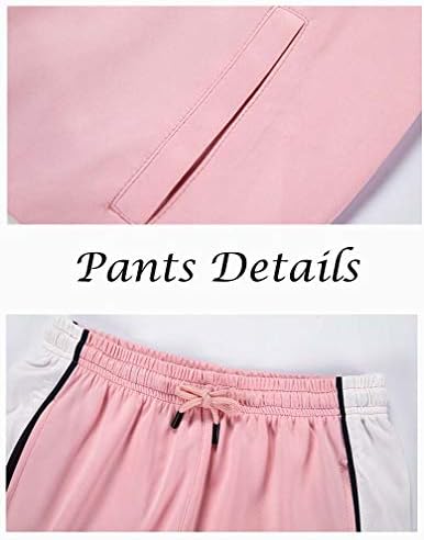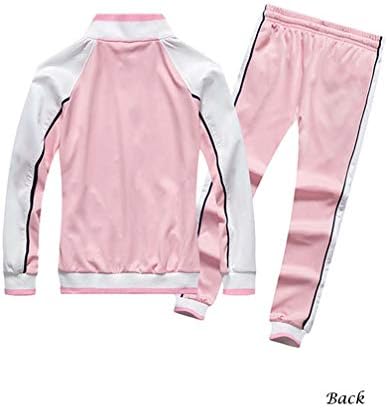 Loose fit 2 piece tracksuit, long sleeve, classic stand collar design with zipper closer, drawstring design long elastic waistband sweatpants with two slant pockets.All design make this warm up sports suit set more normal, fashion, classic and show women elegant charm