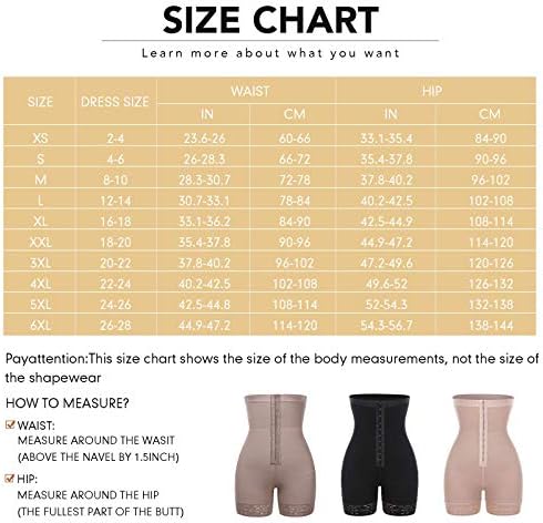 GET YOUR PERFECT FIT via Lover-Beauty SIZE CHART: Please measure your waistline(1.5 inches above navel) and hipline(the fullest part of the butt), then choose the best size to refer the left Size Chart Picture. If you are between 2 sizes, please choose size up. It is normal if you find it hard to squeeze in, you can try more times, once on it will do its job.