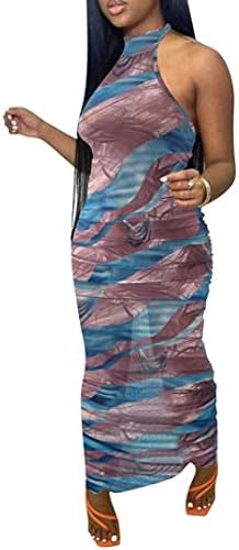 Ophestin Bow Self Tie Up Striped Wave Boho Print Hollow Out Mesh Pleated Cover Up Clubwear Club Sheath Long Dresses Beachwear