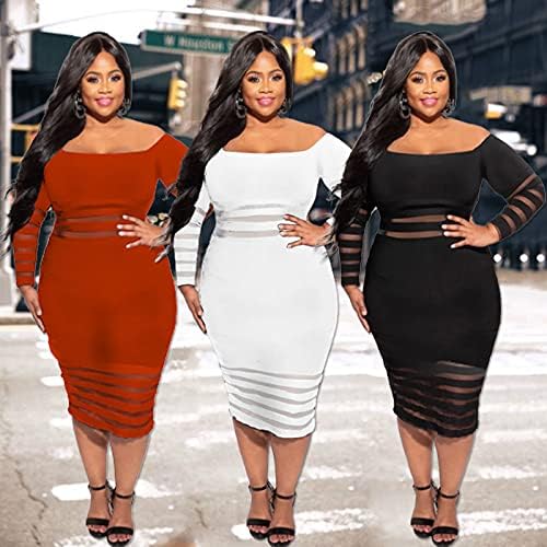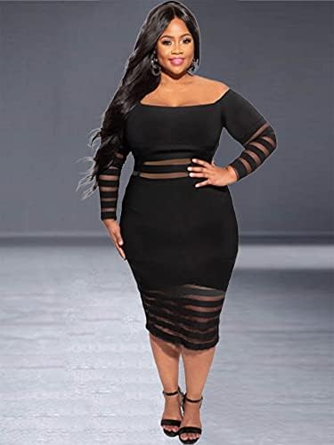 women’s Plus Size Bodycon Dress Sexy Off Shoulder Mesh Stretch Dress