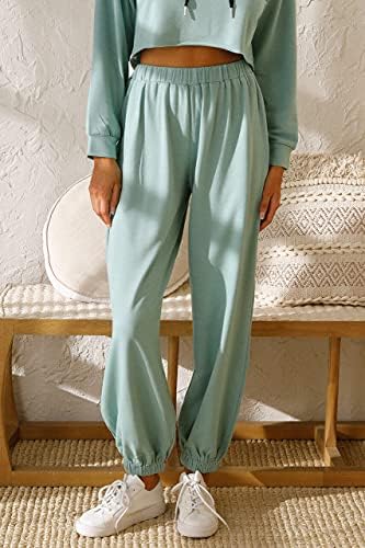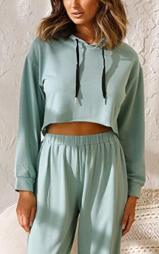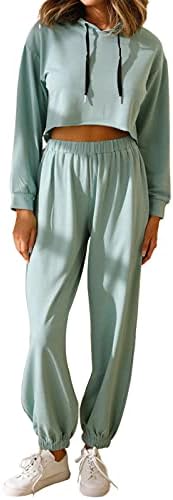 FASHION FEATURES:Hoodie of the same color makes it sporty chic, help you be a cool cool girl.Cropped Length can easy to slender your physique and optimize your body proportion.Long Pants with Elastic-bottom can show the curve of your legs very well, make you look more slender.A simple fashion item you must have in 2021 to satisfy all your style, causal type, cute type and sporty type.Hooded tops with drawstring can help you keep warm in the cold day, tighten it to prevent cold air slipping into your neck.