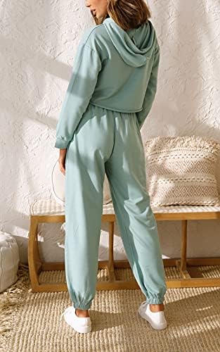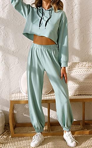 PRETTYGARDEN Casual Outfits Jogger Set Hooded Crop Top with Adjustable Drawstring Elastic High Waist Long Pant