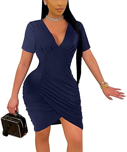 Remelon Casual Summer Plain Stretchy High Waist Slim Fitted High Split Work Evening Cocktail Draped Sheath Mini Dress