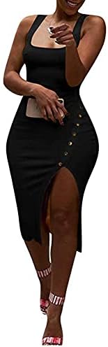 Remelon Summer Basic Knitted Scoop Neck Fitted Knee Length Club Tank Midi Dress Sundress