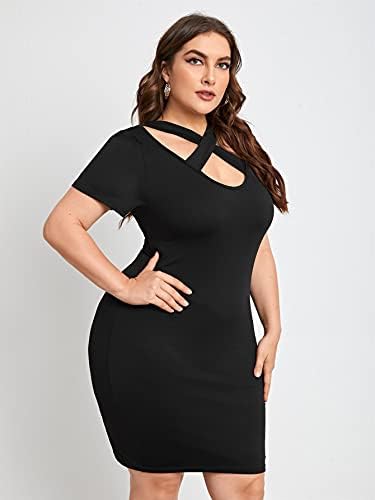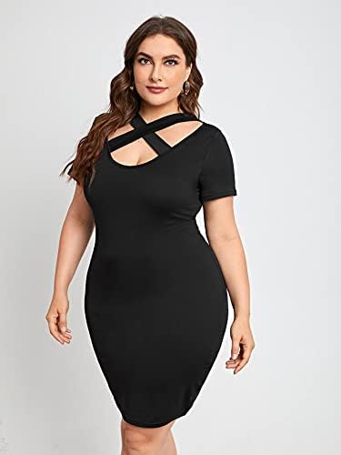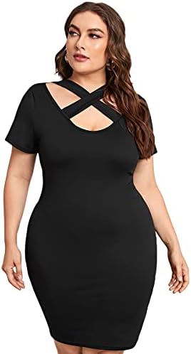 Basic plain mini bodycon dress featuring criss cross and scoop neck