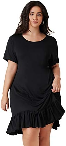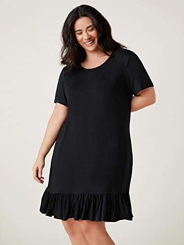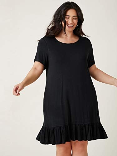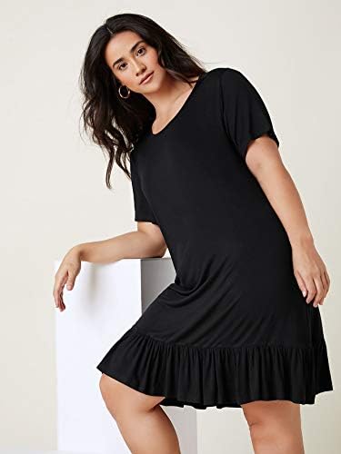 Ruffle hem, round neck, solid color, knee length tshirt dress for women summer