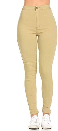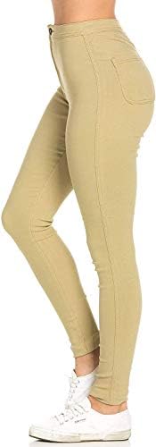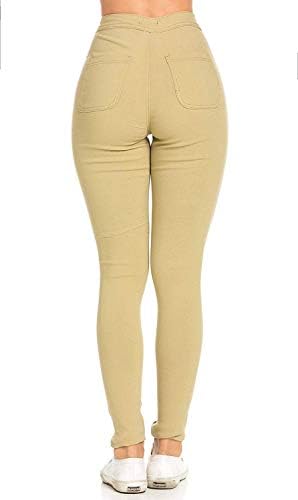 Our high waisted stretchy skinny jeans have different colors – Blue, Black, Khaki, Mustard, Navy Blue, Red, White, Green, Pink, Yellow, Burgundy, Camouflage, Orange, Royal Blue, etc. Machine wash in cold water and like colors. Hang dry do not bleach.
