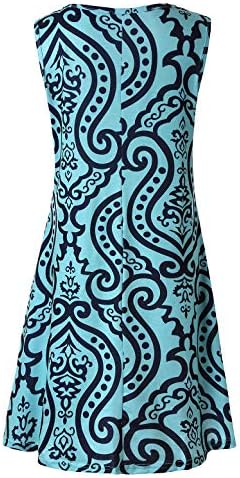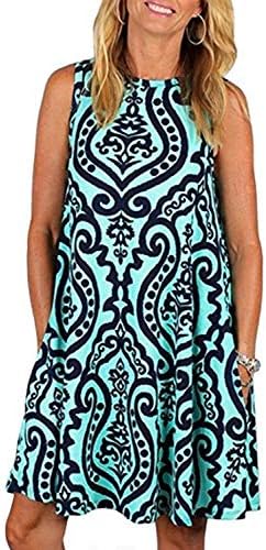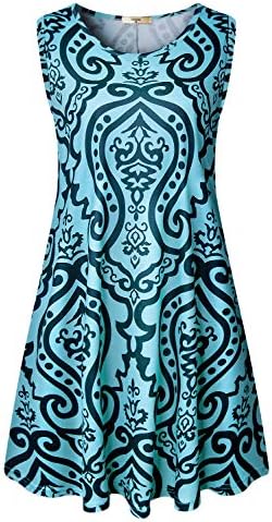 Tanst Sky Women Summer Sleeveless Damask Print T-Shirt Plus Size Dress with Pockets (S-3XL)