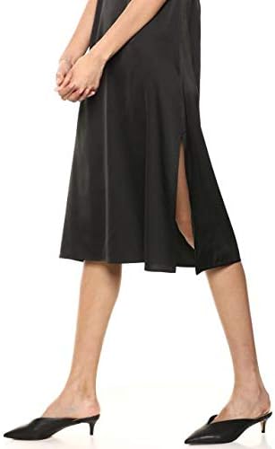 A lightweight silky lingerie-inspired style with a hint of stretch and a body-skimming fit. Dress it up or wear with sneakers for a versatile look. Side slits and adjustable straps, midi-length silhouette