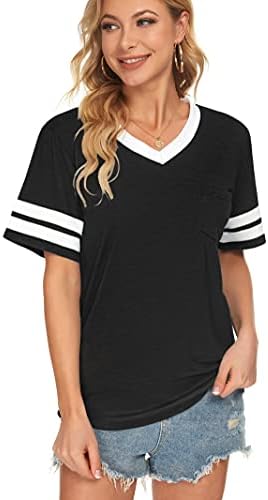Loose Fitting Tops for Women Short Sleeve V Neck T Shirts Summer Tees