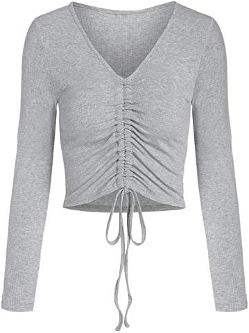 — Features: V- neck, long sleeve, lettuce trim, drawstring front, cropped top, fashion style for this winner for a sexy and chic look