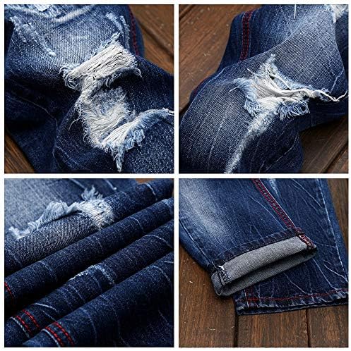 Slim fit Straight distressed retro jeans with comfortable thigh-high,mid rise,fashion ripped holes denim jeans,Zip fly with button,five-pocket styling,washed,vintage style.