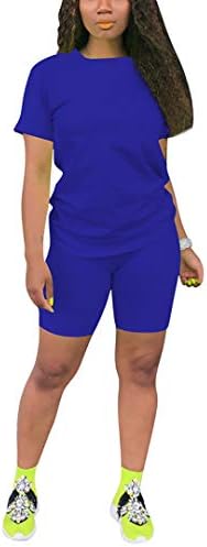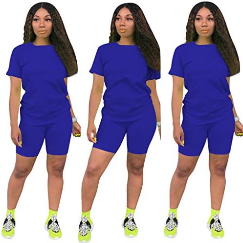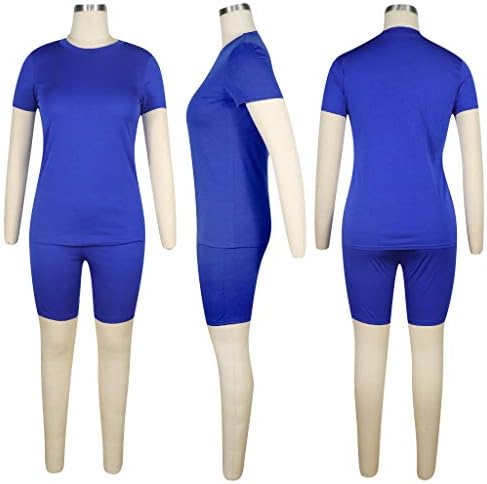 Features: Solid color, short sleeve t shirt, round neck top, athletic, biker shorts, high waist, tracksuit sets 2 piece, fashion activewear sets