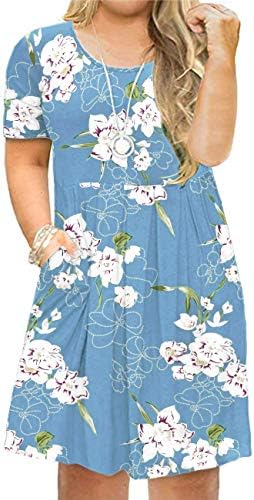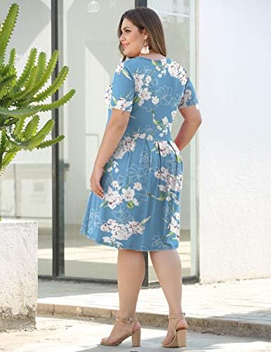 AUSELILY Women’s Plus Size Short Sleeve Round Neck Pleated Loose Swing Casual Dress with Pockets Knee Length