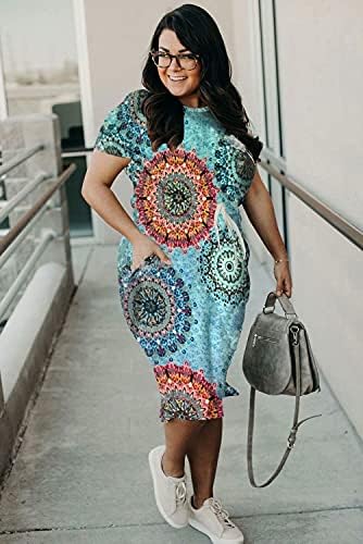 Features: Pockets, short sleeve, plus size dresses, plus summer dress, comfy casual style, Drawstring Waist Floral Midi Dress