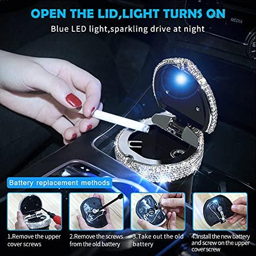 [LUXURY CAR ASHTRAY] – Decorated with high-quality sparkling rhinestones on top, fashionable and stylish car ashtray with lid, easy to carry and fits most auto vehicle car cup holders. For more options, you may visit our store to find other bling crystal auto accessories that match this ashtray,so as to improve visual unity for car’s interior .