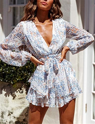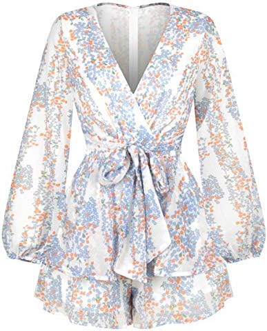 Chiffon Short Jumpsuits ,soft, and breathableDeep V Neck Floral Rompers ,Charming and cuteFloral Printed Ruffle Rompers With Adjustable Tie On The Front Summer Chiffon short jumpsuit,easy to line dry, great for beach, home, daily, work, vacation, sport, leisure, suit for All Occasions The floral pattern romper is ideal costume for you, comfortable and beautiful. It’s a must-have for your cool summer.
