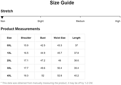 XX-Large Plus: Shoulder: 17.1″, Bust: 47.2″, Waist Size: 48.0″, Length: 38.6″