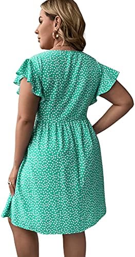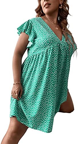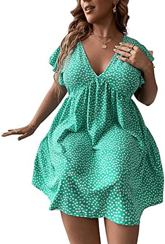 Feature: ditsy floral print, short sleeve, high waist, a line, plus size