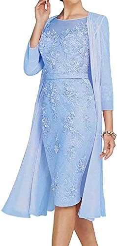[Unique Design]★Mother of The Bride Dress. Fully lined with built-in bra/Two Pieces with Jacket/3/4 Sleeves/Sheath Short style/Zipper closure.