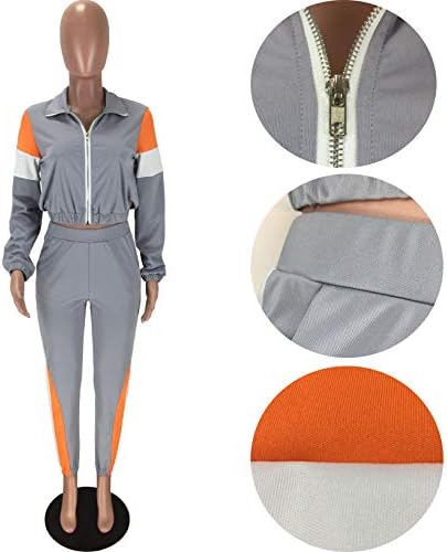 Features: zipper front, colorblock patchwork, long sleeve, solid color, turn-down collar, crop top, bodycon long pants, elastic waistband, two pockets side, active two-piece tracksuit set, casual pants set, slim fit, athletic jogger suit