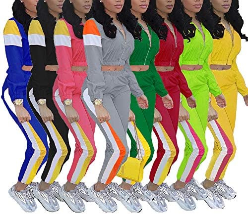 Women’s 2 Piece Tracksuit Set Long Sleeve Crop Top Skinny Long Pants Set