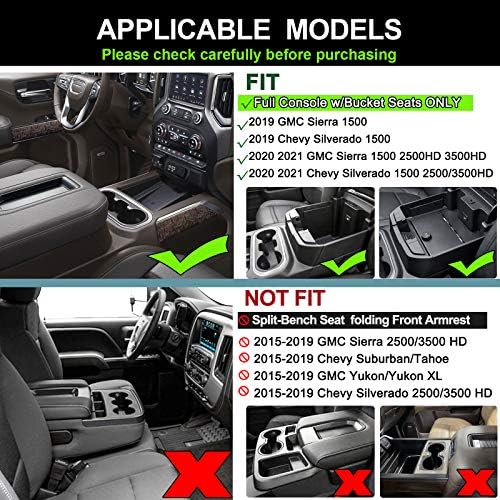 PLEASE CHECK – DOES NOT FIT 2015-2019 Chevy Silverado 2500HD/3500HD/GMC Sierra 2500HD/3500 HD/2015-2021 Chevy Suburban/Tahoe/GMC Yukon/Yukon XL and 2019-2021 Chevy Silverado/GMC Sierra with Bench Seats.