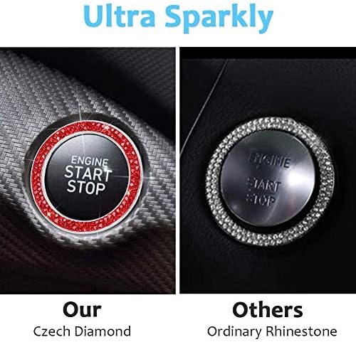 💎2021 New Style: Crystal interior ring with 2 ROWS of diamonds, super bling! Package includes 2x red push to start bling emblem.
