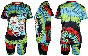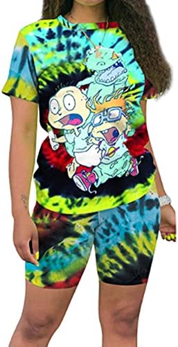 Style: Two piece outfit for women, T-shirt top + shorts set, fashion tie dye print.