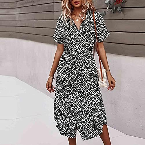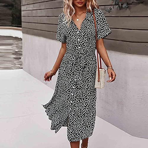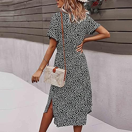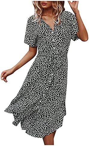 🌼FEATURES – Sexy V Neck, Floral Sundress, Split swing short sleeves, Button Down Dress, Short Sleeves, A-line Style, Knee Length, Elastic Waist, Flowy Hem, Summer Midi Dress, Skin-friendly, Removable belt, to show your perfect body curve. It is definited as a staple piece for all occasions.