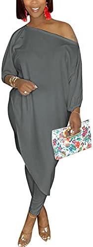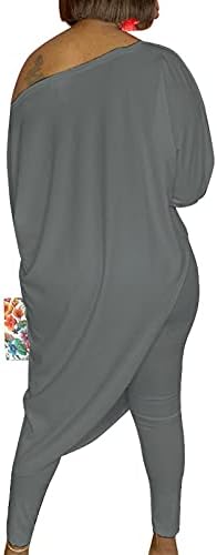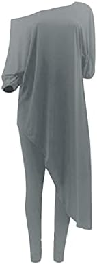 Womens Off Shoulder 2 Piece Outfits Long Sleeve Irregular Hem Top Tight Leggings Sets Loungewear