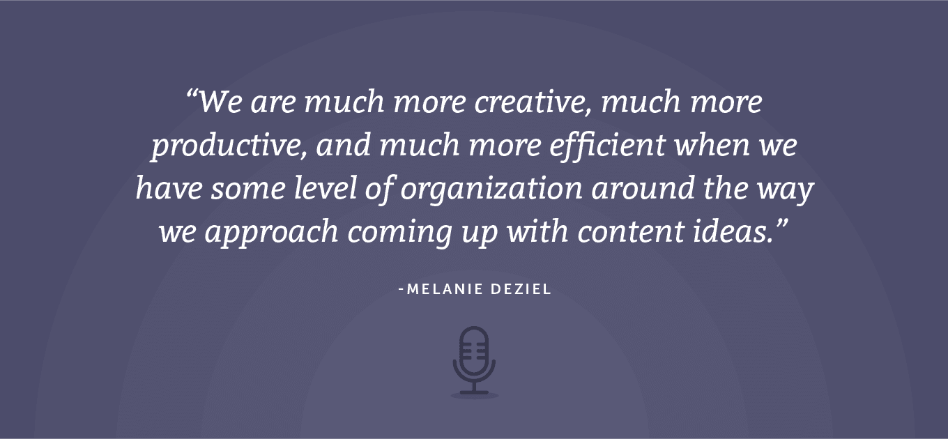 - “We are much more creative, much more productive, and much more efficient when we have some level of organization around the way we approach coming up with content ideas.”