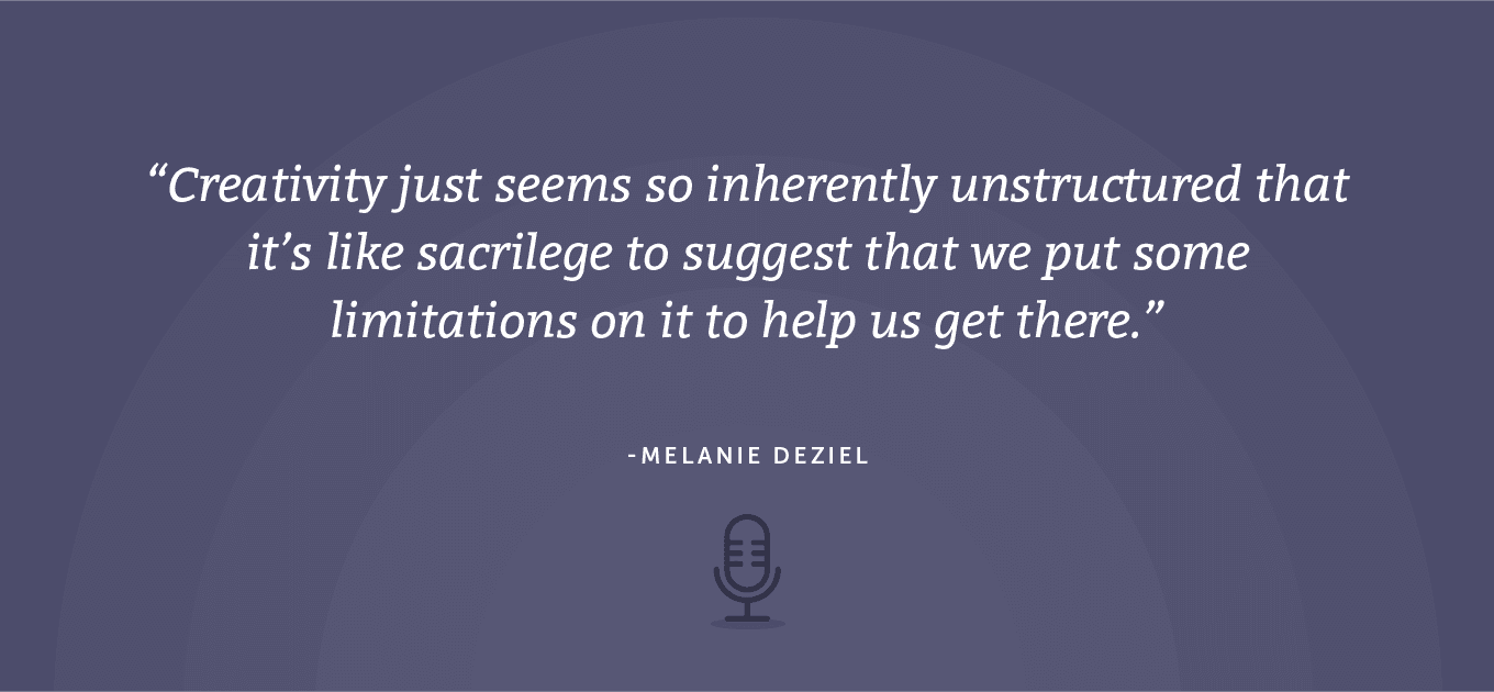 - “Creativity just seems so inherently unstructured that it’s like sacrilege to suggest that we put some limitations on it to help us get there.”
